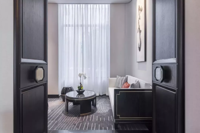 在中國文化風(fēng)靡全球的現(xiàn)今時代,新中式元素與現(xiàn)代材質(zhì)的巧妙兼柔,以新工藝詮釋傳統(tǒng)文化,明清木門與窗欞、布藝床品相互輝映,再現(xiàn)了移步變景的精妙小品。